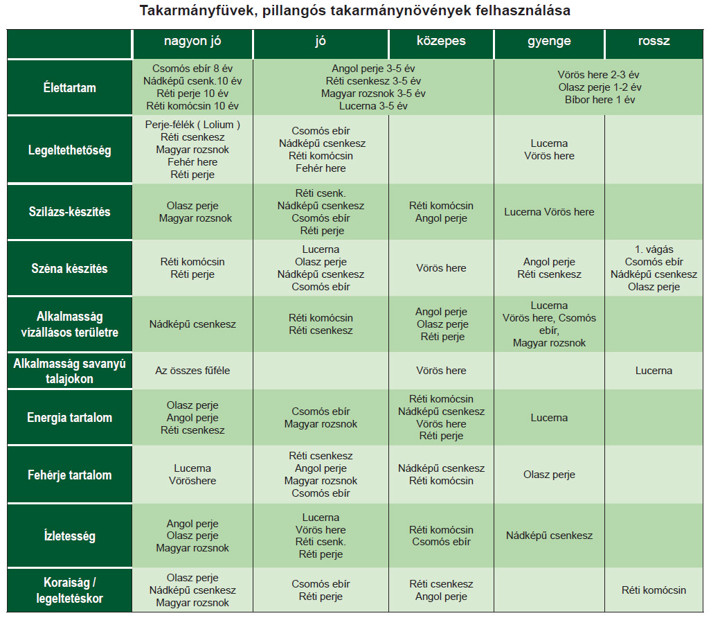 Takarmány füvek, pillangós takarmánynövények felhasználása
